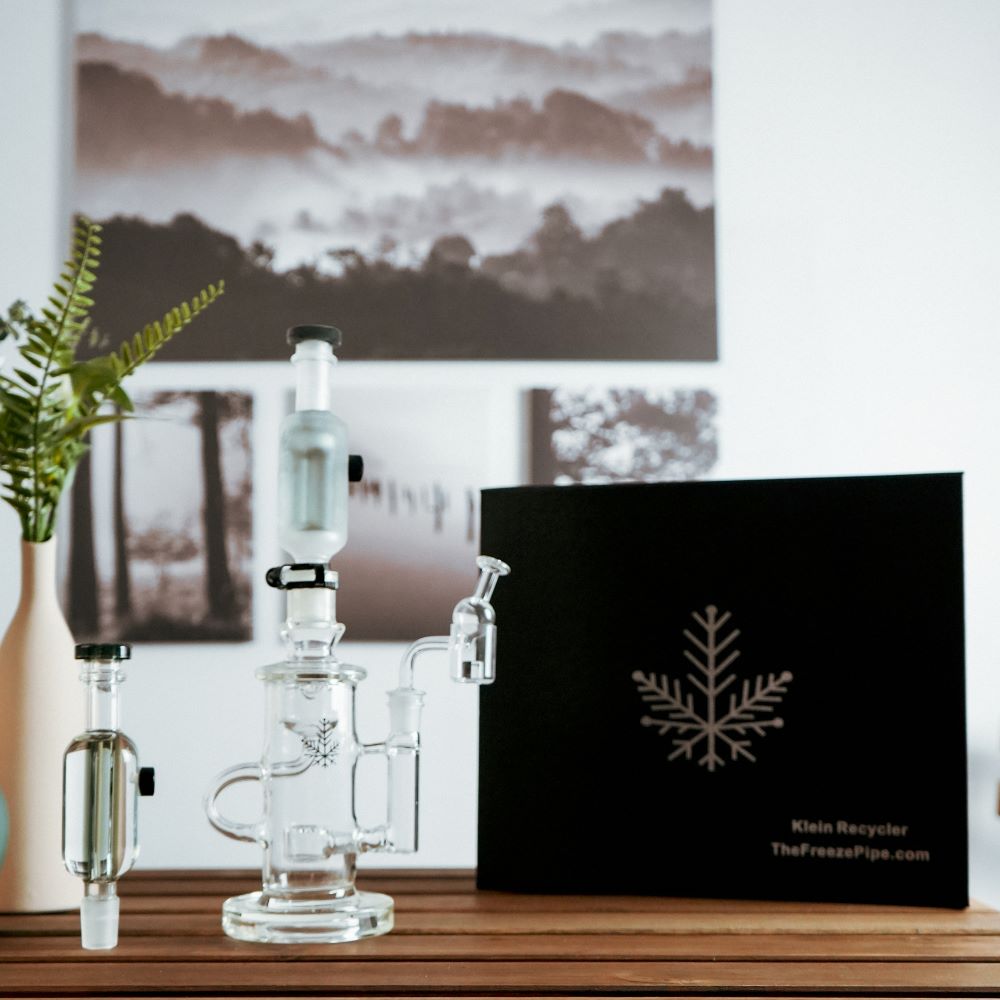 Experience the ultimate dabbing adventure with Freeze Pipe's elite Klein Recycler! Crafted to offer superior performance, this rig's size, style, and laser-cut percolator serve up serious filtration and delicious airflow.