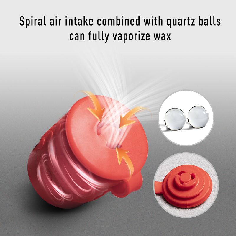 - Spiral air intake:The special structure of the atomizer allows the airflow to spirally rotate after entering the atomizer . Combined with the rotation of the quartz balls, it can fully vaporize your Wax.
